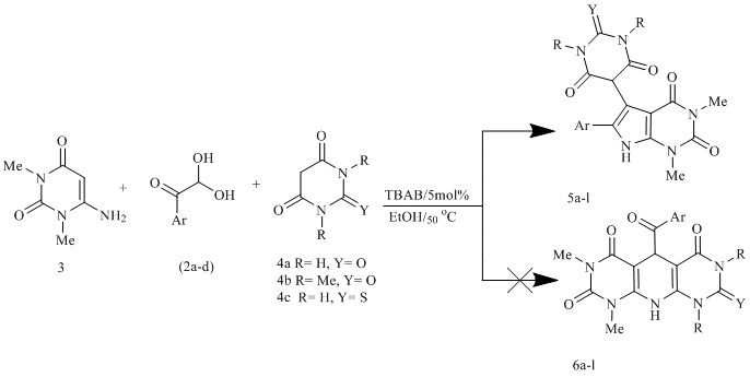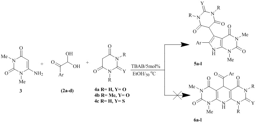 1, 3-Dimethyl-6-aminouracil, Arylglyoxals, Barbituric acid derivatives, TBAB, Pyrrolo[2, 3-d]pyrimidine, One-pot .Abstract